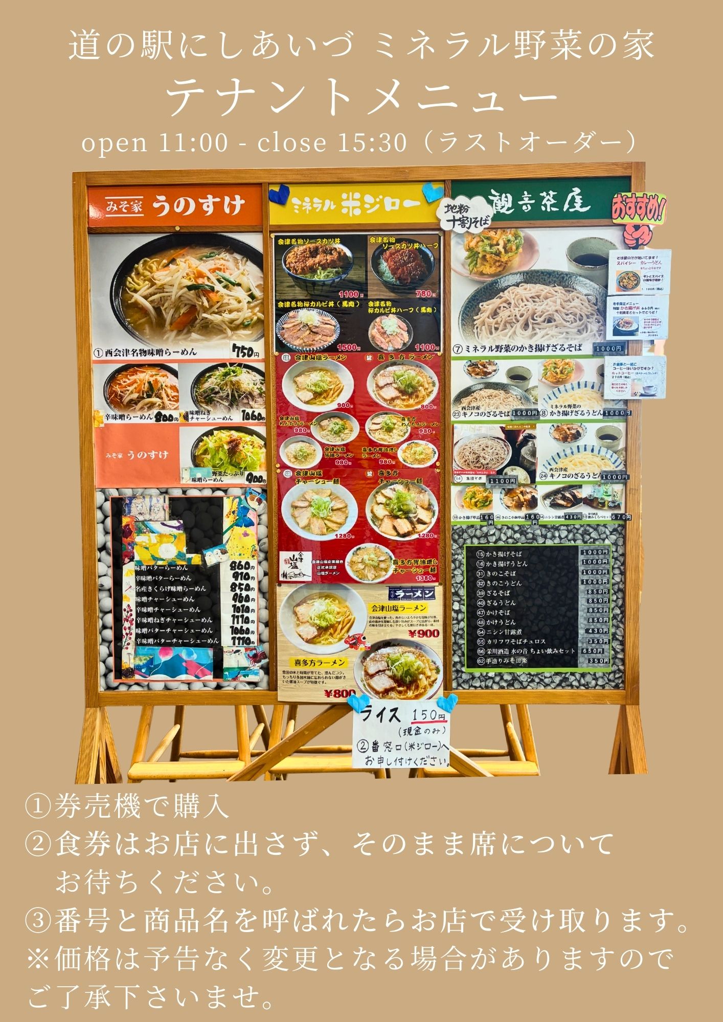 フードコート 11:00~15:30(ラストオーダー)