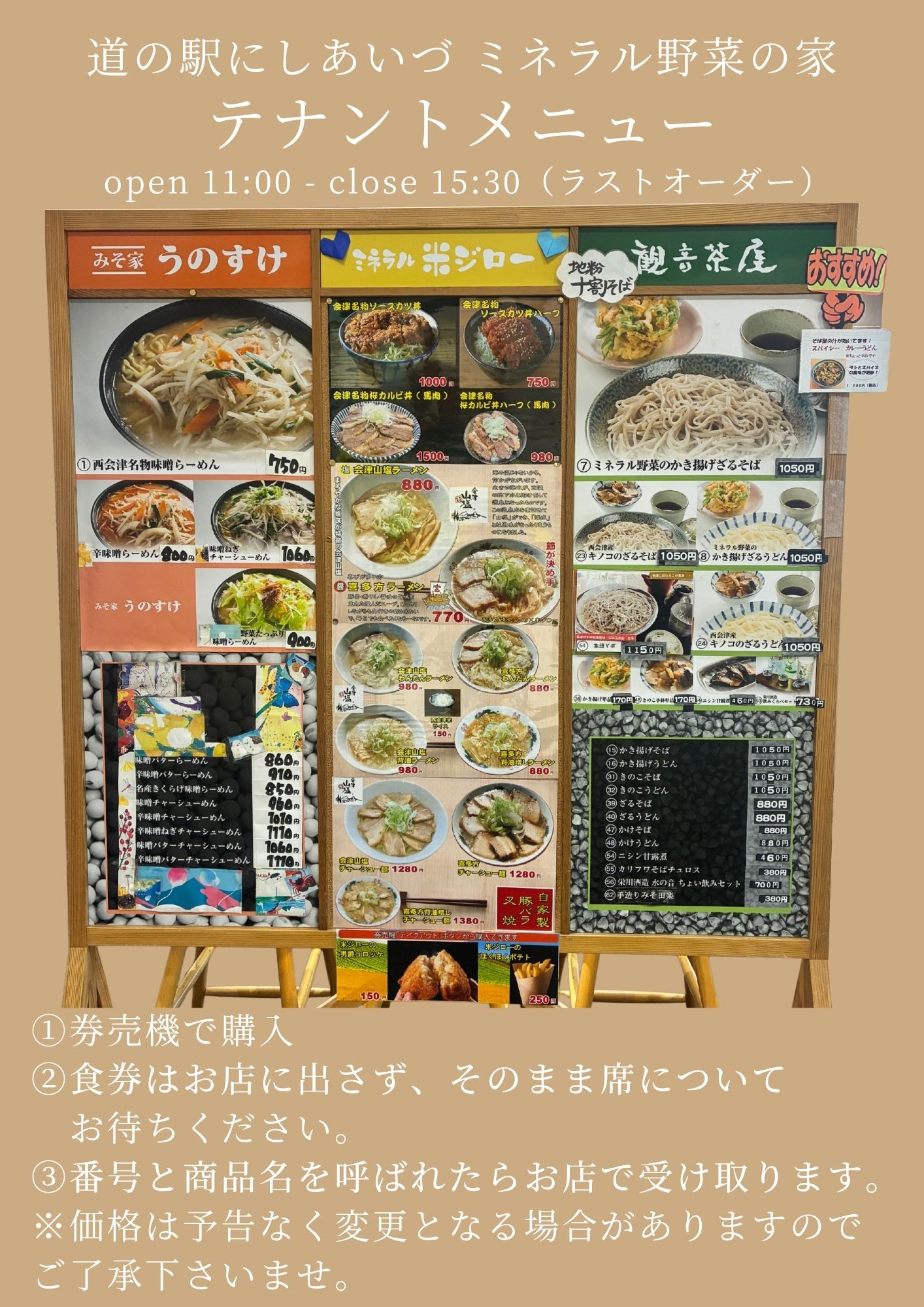 フードコート 11:00~15:30(ラストオーダー)