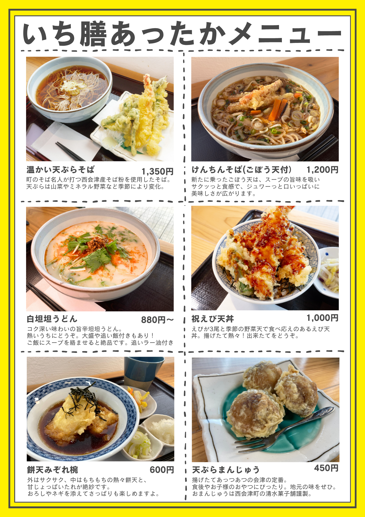 【いち膳・テナント メニュー表】