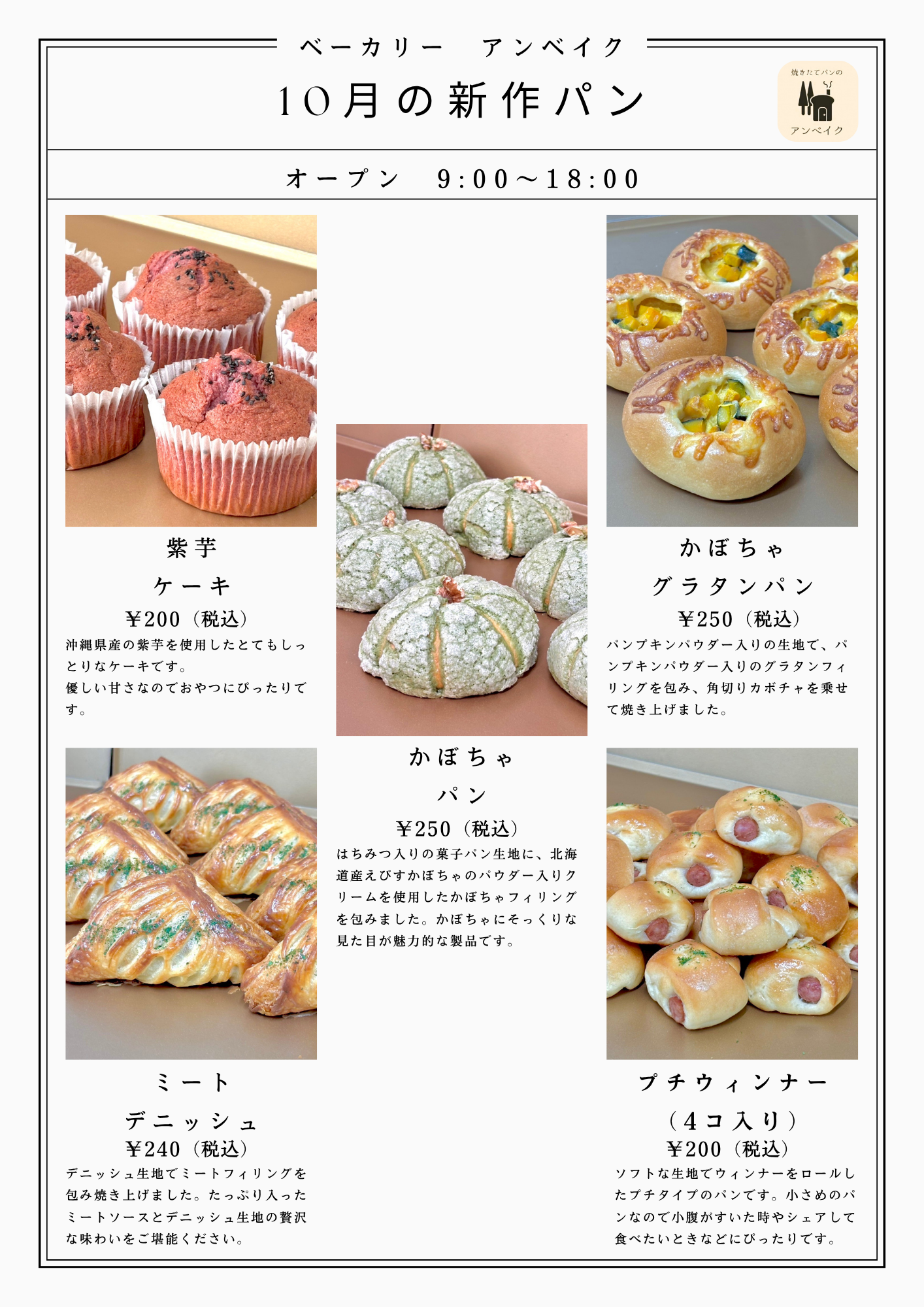 焼きたてパン アンベイク  9:00~18:00(なくなり次第終了)